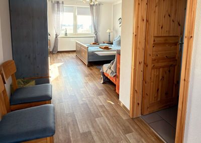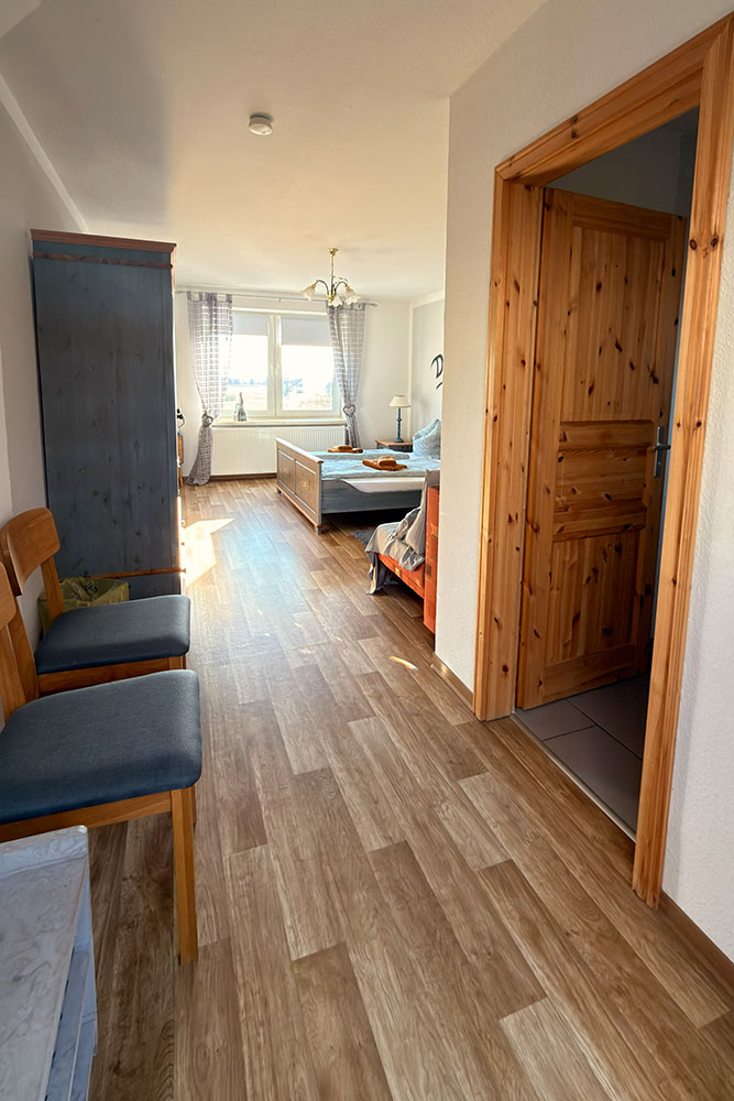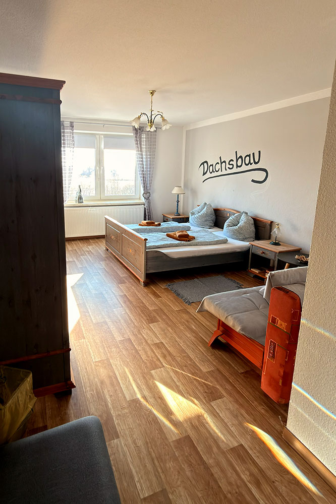 Zwischen 2016 und 2020 entstanden vier Zimmer, davon sind zwei behindertengerecht ausgebaut worden. Die Zimmernamen haben wir nach einheimischen Tieren gewählt, die man auch im Oderbruch beobachten kann. Von allen Zimmern hat man einen herrlichen Blick auf unsere schöne Natur, die Oder und das nördliche Oderbruch.