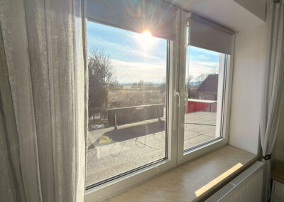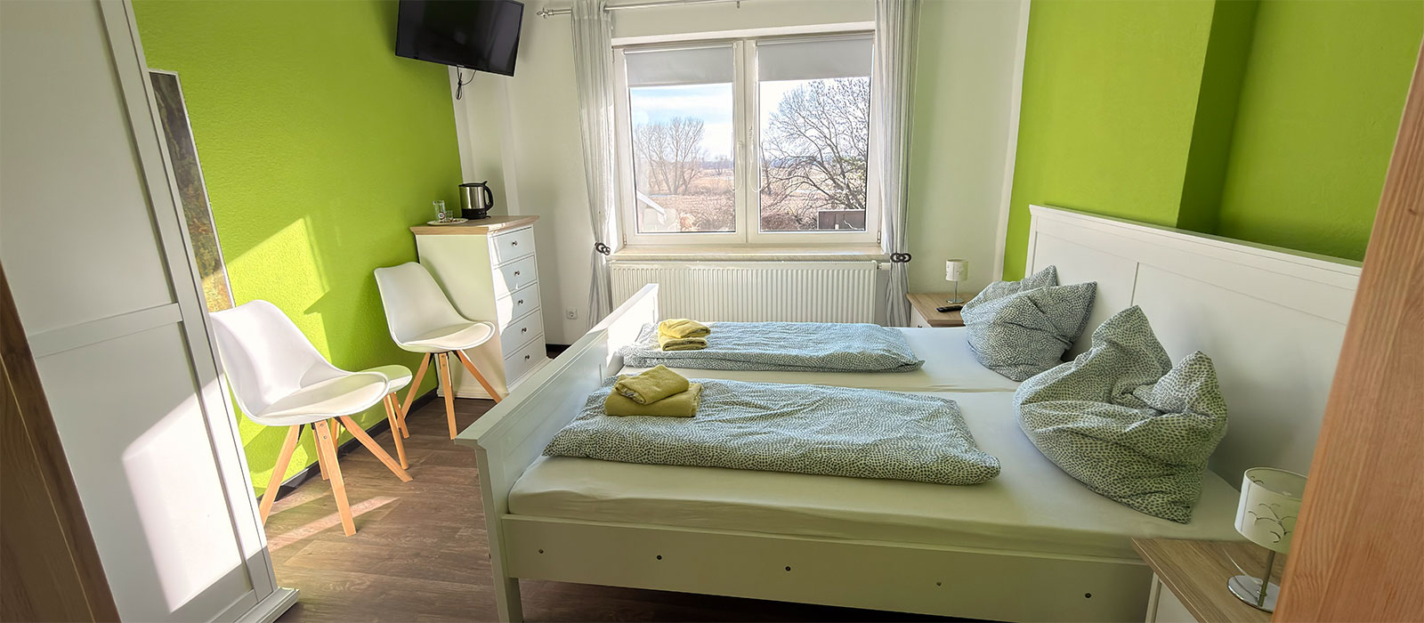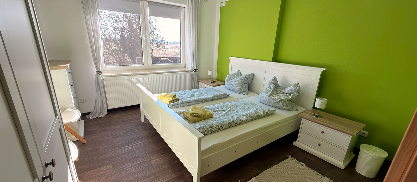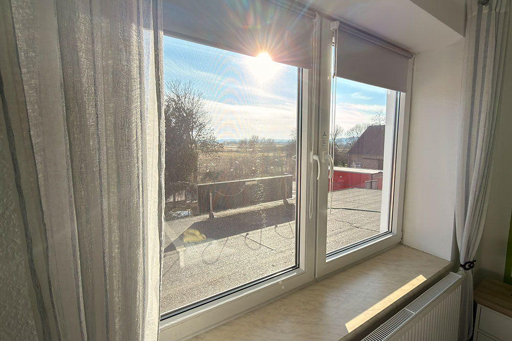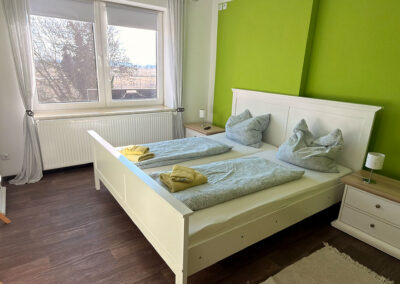 Das Zimmer ist modern und mit weißen Möbeln eingerichtet. Wenn man im gemütlichen Bett liegt, blickt man auf ein selbstgemaltes Bild von einem Eichhörnchen. Man hat das Gefühl, es bickt mich die ganze Zeit an... vielleicht?!
